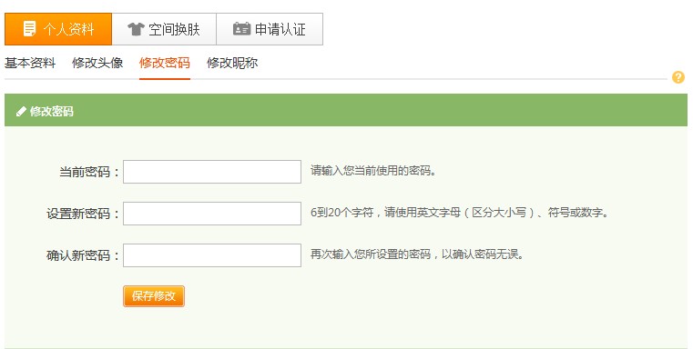 登录之后您可以在您左边的导航菜单中“设置”选项里看到“修改密码”选项,点此链接,然后输入旧密码和您的新密码即可。